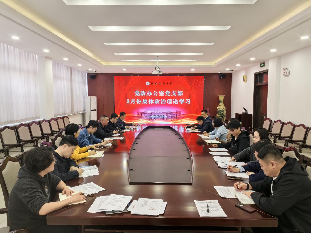 3月27日下午,党政办公室党支部在校部120(东)会议室召开党员大会,组织开展集体政治理论学习。党支部书记董文武同志主持会议。