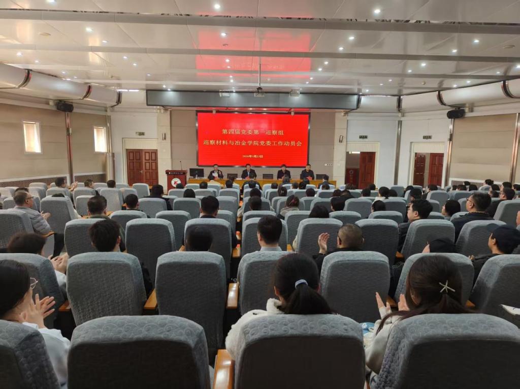 为深入贯彻落实党中央全面从严治党战略部署,推进学校全面从严治党向纵深发展、向基层延伸,3月23日,校党委第一巡察组巡察材料与冶金学院党委工作动员会在图书馆报告厅顺利召开。校党委第一巡察组组长张国庆,副组长王克磊及巡察组全体成员出席会议,材料与冶金学院全体师生员工参会,会议由学院院长艾新港主持。