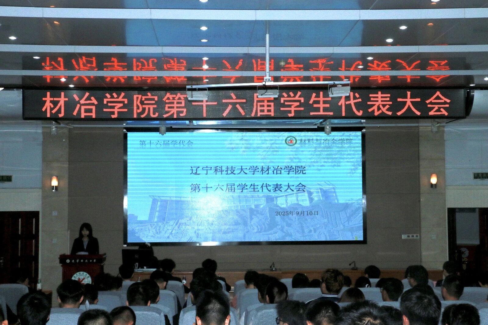 2025年9月10日,辽宁科技大学材料与冶金学院在图书馆二楼报告厅隆重召开了第十六届学生代表大会。大会审议并通过了第十五届学生会工作报告,选举产生新一届学生会、新闻网络中心成员。团委书记徐跃鸣、第十五届学生会、新闻网络中心工作人员及学生代表参加本次大会。