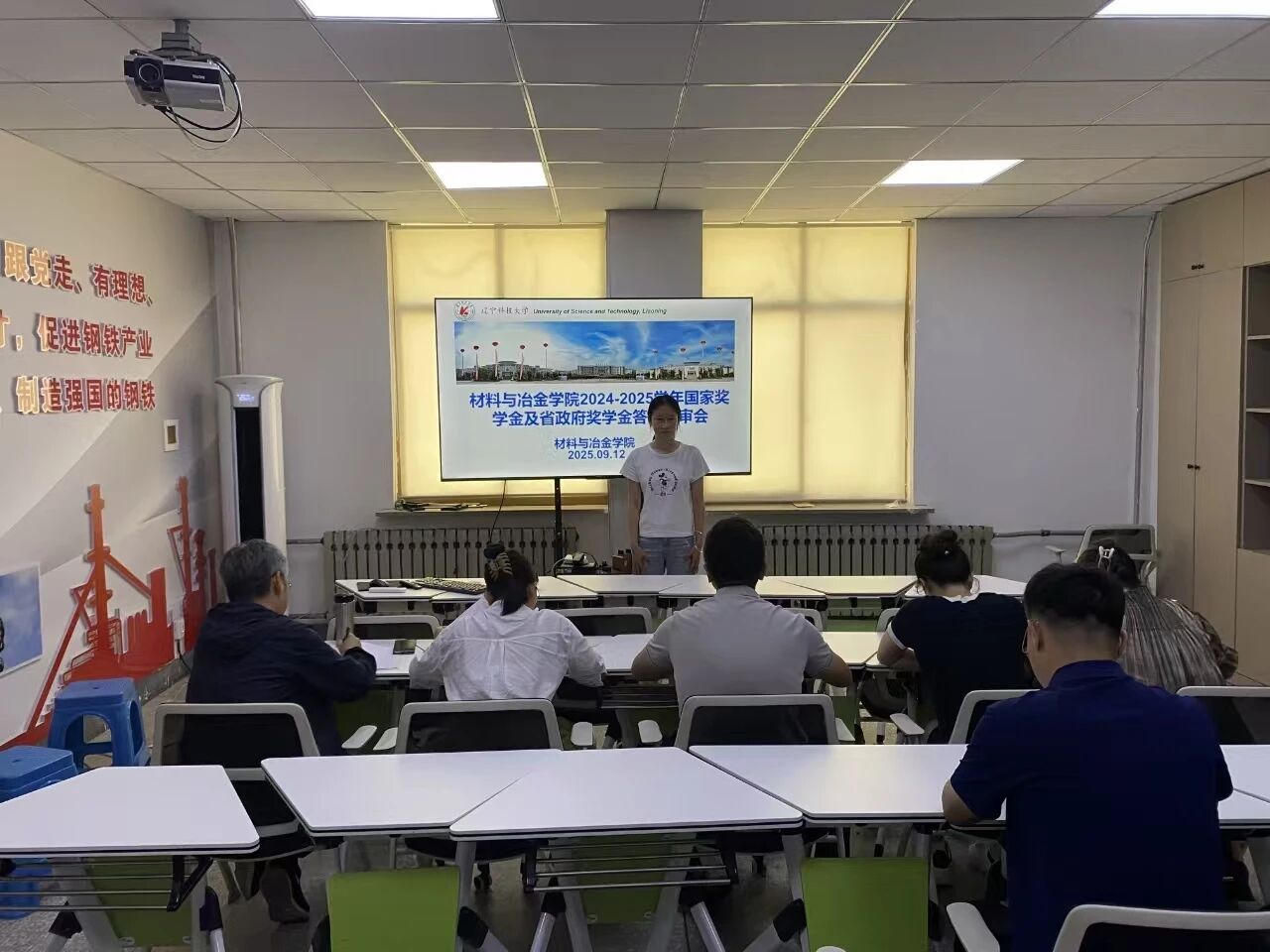 9月12日下午,辽宁科技大学材料与冶金学院在明贤楼 A234 会议室举行了 2024-2025 学年国家奖学金及省政府奖学金答辩评审会。本次答辩会由学院学生工作负责人、学办主任、本科生辅导员、专业教师及学生代表参加。
