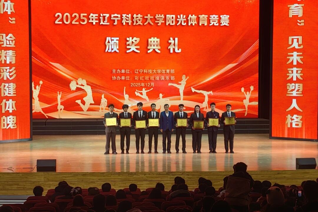 12月12日,辽宁科技大学体育部主办以“‘体’验精彩见体魄,‘育’见未来塑人格”开展了2025年辽宁科技大学阳光体育竞赛颁奖典礼,材冶学院荣获阳光体育竞赛第一。