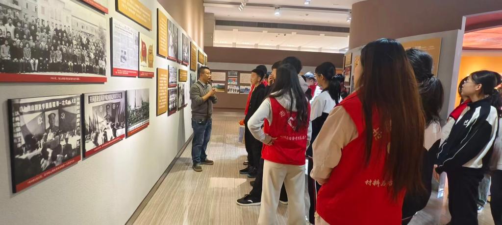 随后三十八中学师生前往辽科大,开启研学环节。在研学环节中,师生依次参观铸钢纪念钢铁碑、校史馆、建艺学院文化作品展区,感悟工科底蕴、回溯办学历程、品鉴艺术风采;走进雷锋馆开展红色研学,重温雷锋事迹,厚植爱国情怀;参观教学楼、体育场,沉浸式体验大学生活,并开展跳绳、趣味跑步等互动活动;最后走进化工实验室,聆听科研知识讲解,探索科学奥秘,激发求知热情。活动期间,学子与中学生牵手合影,学生材控党支部还为中学生赠送学习用品与奖品,传递温暖关怀。