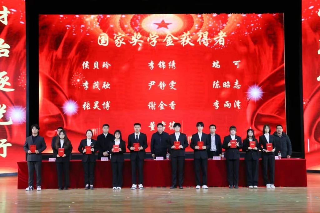 会议在庄严的国歌声中拉开序幕,艾新港院长宣读2024-2025年度学生工作表彰名单。