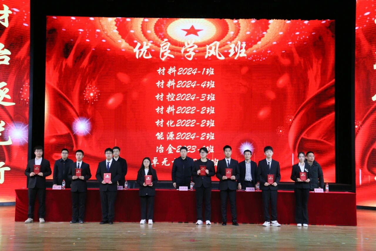12月9日,材料与冶金学院在校礼堂召开2025年学风建设表彰大会。材冶学院院长艾新港,党委书记刘彦国等五位领导及各专业辅导员出席本次大会。学院团委书记徐跃鸣主持本次大会。