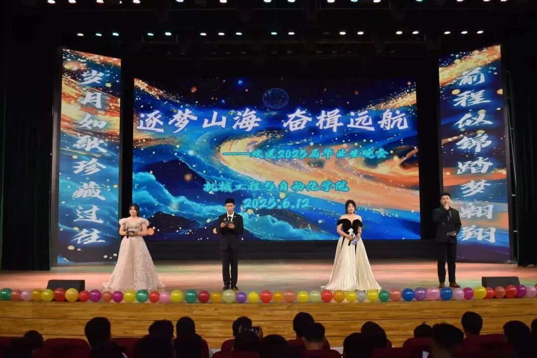 6月12日,机械学院在校礼堂举行2025届毕业生欢送晚会。学院领导、教师代表及全体毕业生出席。晚会节目包括歌曲《直到世界尽头》、小品《青春偶像剧》、歌曲《时间都去哪儿了》《祝你一路顺风》,以及于晓光教授的诗朗诵《青春的诗行》。