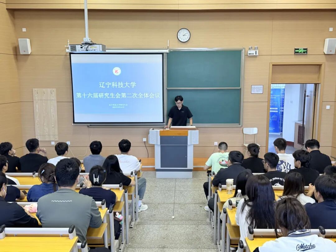 9月24日,辽宁科技大学第十六届研究生会第二次全体会议在博智楼一楼多功能厅召开。会议回顾了上学期研究生会工作并规划新学期工作,明确学术交流平台建设、文体活动创新、宣传质量提升、权益保障等重点任务。
