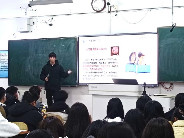 钱炳旭以“故事+照片”的生动形式,分享了大学前三年的多彩经历。他围绕参与过的各类活动展开,畅谈学业与工作的平衡之道,更传递了实用干货:工作中若出现失误,切勿轻描淡写,而要铭记于心、认真复盘,避免重蹈覆辙。此外,他特别叮嘱大家珍惜“大学生”这一独特身份,趁课余时光多走出去看看,在行走中拓宽视野、丰富人生体验,让青春不留遗憾。
