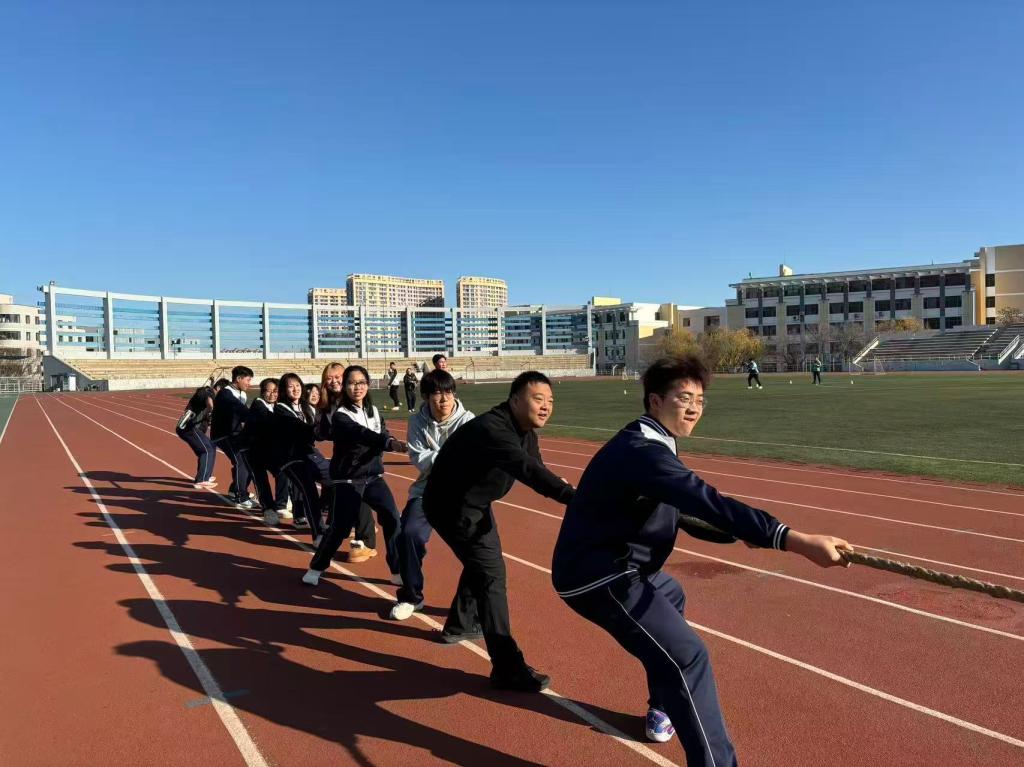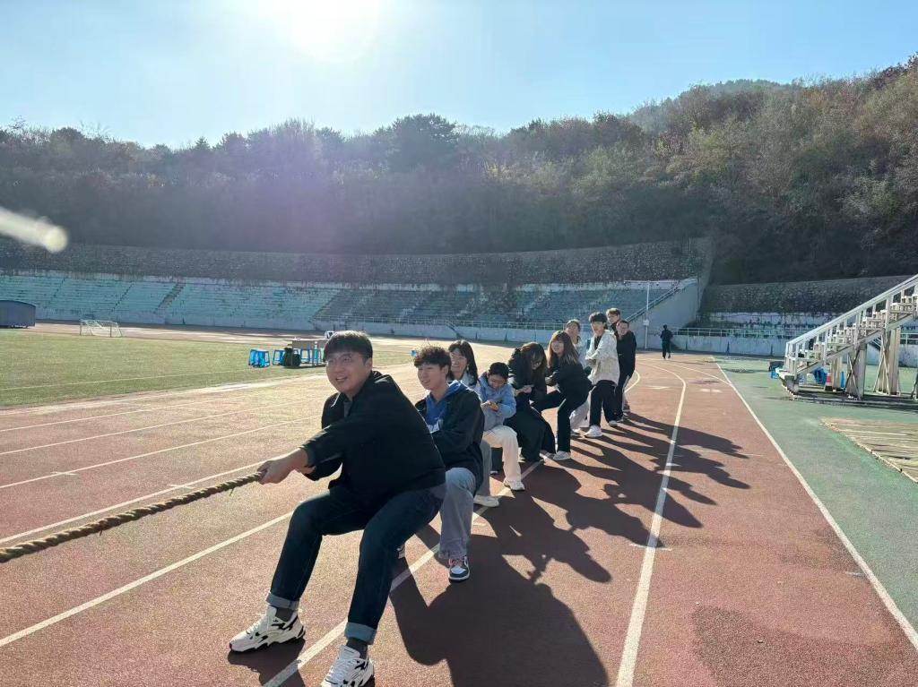 开幕式后,各项赛事有序展开。在100米、400米短跑中,选手们展现出惊人的爆发力与速度;女子800米和男子1500米长跑则充分考验了运动员的耐力与意志,体现了“坚持不懈、超越自我”的体育精神;4×400米接力赛中,队员们配合默契、奋力传递,生动诠释了班级凝聚力和团队协作的重要性。除了传统竞技项目,两人三足、呼啦圈接力等趣味活动也让同学们在协作中增进友谊,赛场内外洋溢着欢声笑语。期间穿插的击鼓传花等互动环节,进一步营造了轻松愉快的氛围。压轴进行的拔河决赛更是将整场运动会推向高潮,各班队员全力以赴,观众呐喊助威声此起彼伏,充分展现了工商管理学院学生的集体荣誉感和拼搏精神。