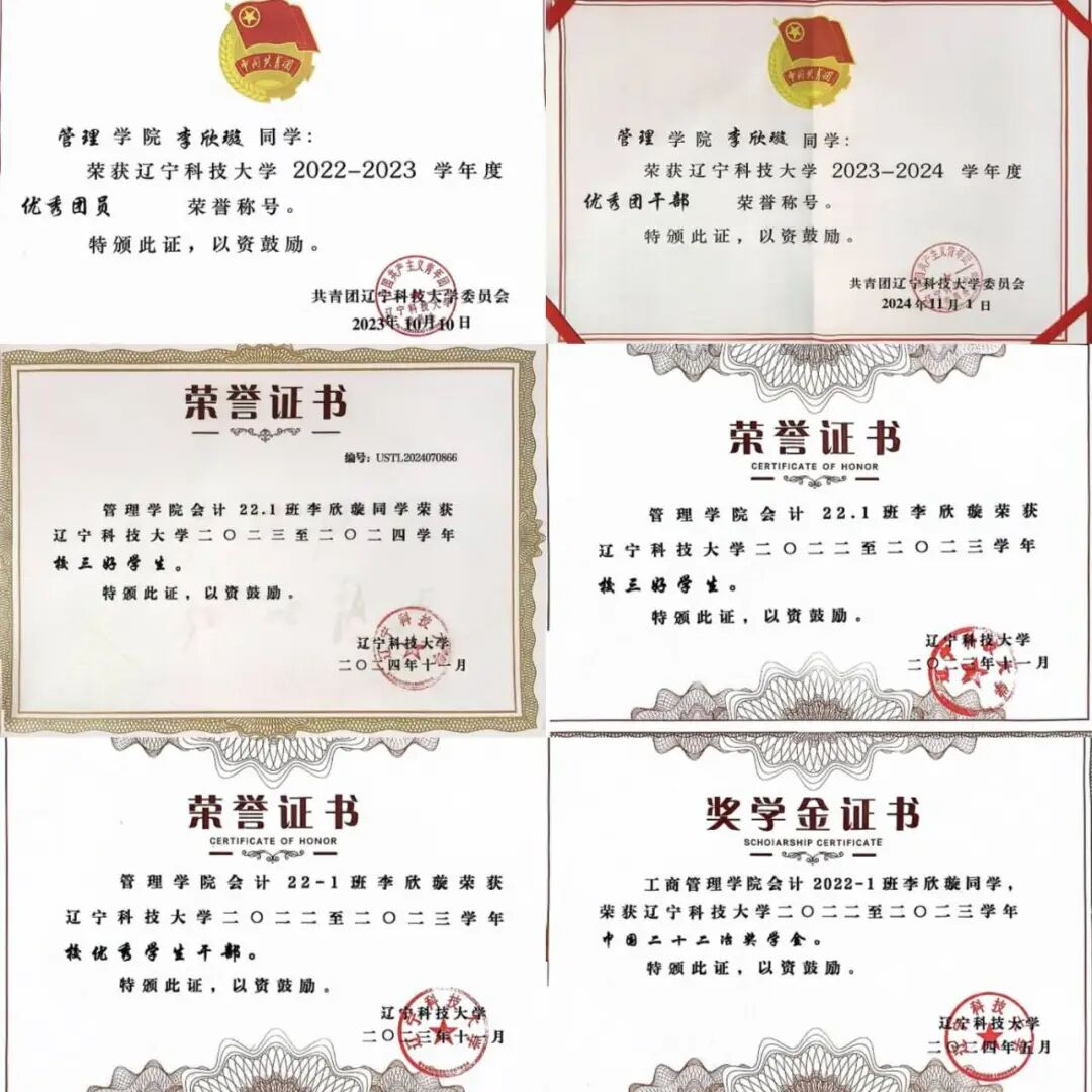 李欣璇,中共党员、会计221班班长、先锋岗、学办助理、学院自管会执行主席、会计师生党支部宣传委员。以严谨治学、勤勉不息的态度,在学业上取得卓越成就,连续三年综测排名专业第一、三年综合排名专业第一,斩获国奖2项、省奖9项、校级荣誉15项以及校内外奖学金5项。科研上,负责校级大创项目1项,以第一作者发表省级期刊论文4篇。积极投身实践,踊跃参与运动会、学院迎新、“三下乡”“扬帆计划”等社会实践活动,用实际行动诠释责任与担当,展现出新时代青年的蓬勃朝气与进取精神。