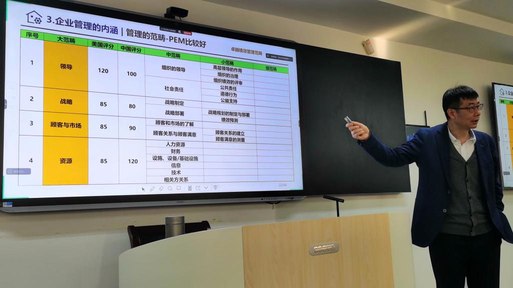 针对“企业管理的范围”,孟书记格外强调了“框架思维”在复杂管理情境中的关键作用。他重点强调了涵盖领导、战略、顾客与市场、资源、过程、测量分析与改进以及经营结果七大范畴的“卓越绩效管理模式(PEM)”。他指出,优秀管理者必须建立“穷尽而不交叉”的系统思维,避免“只见树木,不见森林”的决策陷阱。