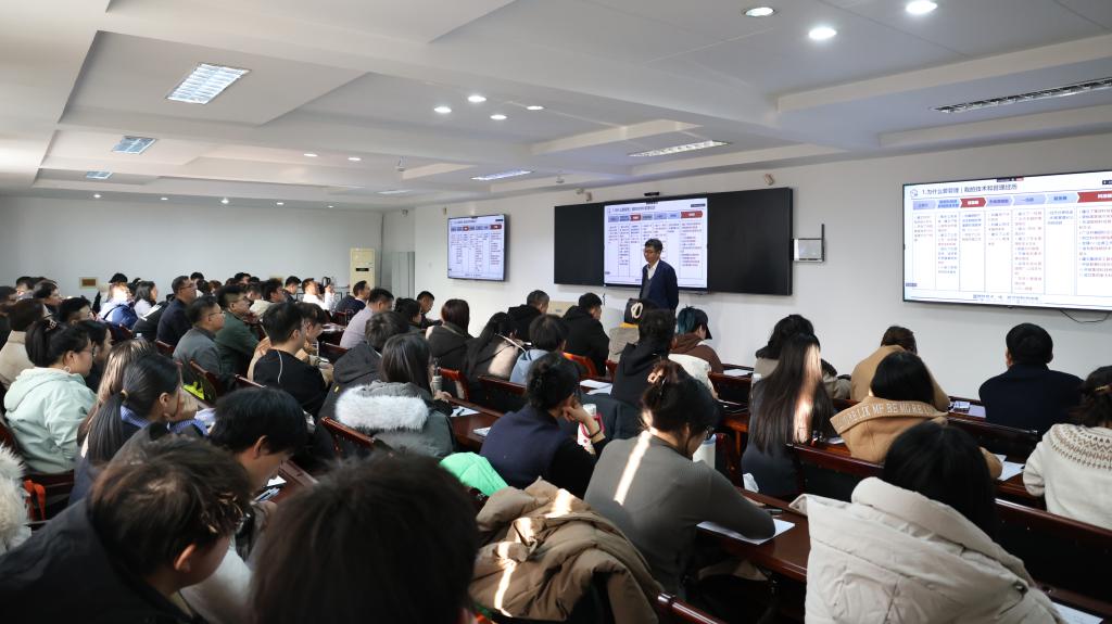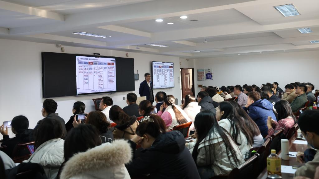 从鞍钢到高校:一场管理智慧的传承。报告伊始,孟书记以个人职业发展为主线,生动勾勒出一幅“从技术走向管理”的成长图谱。从三炼钢技术统计系统的建立,到鞍钢全集团科技管理体系的构建;从车间层面的“四化”管理目标,到集团层面的“1361”战略规划,他系统回顾了在鞍钢不同岗位所推动的管理实践与创新。孟书记指出,管理并非抽象概念,而是“点、线、面不断循环又持续拓展”的动态过程——这一深刻比喻,瞬间拉近了学员与“管理”这一深奥主题的距离。
