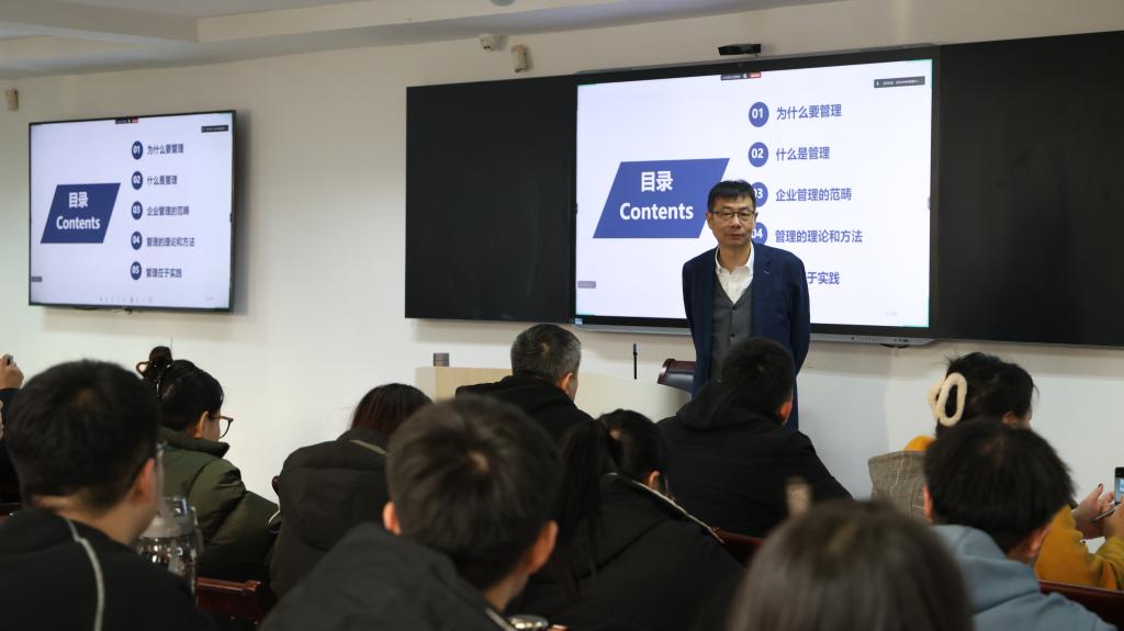 11月29日,工商管理学院(MBA教育中心)成功举办“管理的实践与思考”主题报告会,特邀学校党委书记、教授级高级工程师孟劲松担任主讲嘉宾。报告会由工商管理学院院长、MBA教育中心主任金玉然教授主持,学院MBA学员、学术研究生及教师代表通过线上线下混合教学模式共计300余人参与学习。