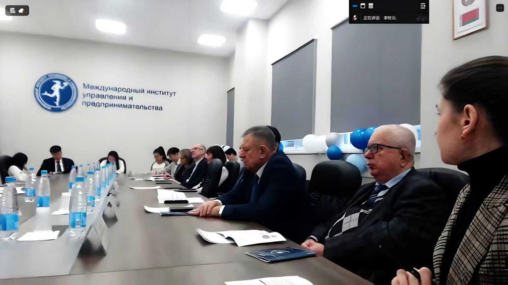 会议开幕式上,白俄罗斯国际管理与创业学院校长Alexander Rimovich Tsyganov院士、辽宁科技大学工商管理学院院长金玉然教授等8位中外高校代表先后致辞。金玉然教授以“低碳经济与智慧商业发展路径”为主题作线上主旨报告,系统分享了学院在绿色物流、碳达峰碳中和标准制定、数字经济与产业融合等领域的研究成果,其提出的“商业模型创新画布(BMIC)”方法论引发与会嘉宾热烈讨论与广泛认同。