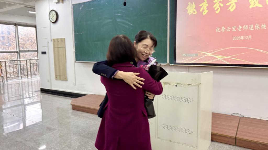 李云宏老师随后发表荣休感言。她深情追忆点滴难忘时光——从青涩站上讲台到从容深耕教学,从一字一句批改作业到一年一年见证学生成长。她坦言,教师生涯中最欣慰的收获,是看到一批批学子成为专业扎实、品行端正的社会栋梁。她寄语学院继续坚守育人初心,勉励青年教师“心中有爱、手中有术”,鼓励同学们“立大志、明大德、成大才”,并真诚表示自己虽离讲台,心仍系学院,愿以另一种方式继续关注和支持学校发展。