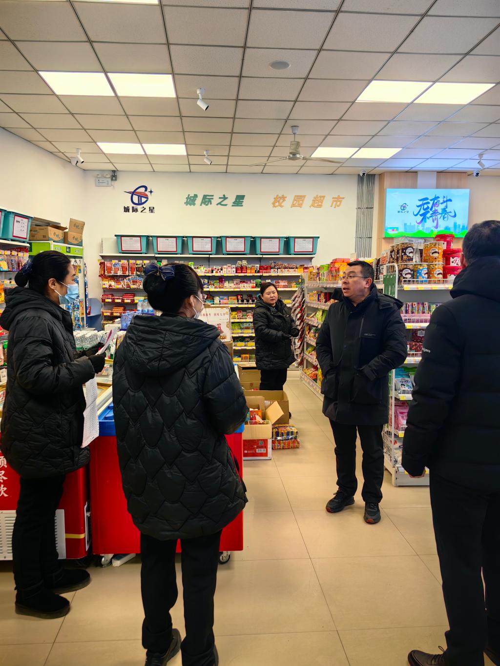 国资处处长周建国与各服务网点负责人交谈并强调,各网点要坚持以师生为本,统筹做好营业准备工作,扎实做好物资供应、食品安全、物价管控、行李收发、卫生保洁、消毒通风等服务保障工作。开学在即,要以良好的精神面貌做好服务,迎接师生返校,为全校师生提供安全舒适便捷的工作、学习及生活条件,为学校高质量发展提供保障。(文图/焦萌 校/尹帅 审/周建国)