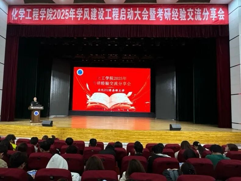 为充分发挥优秀学子的榜样引领作用,帮助学生明晰考研方向、掌握备考技巧。4月23日,化工学院在校礼堂举办了2025年考研经验交流分享会。本次活动邀请到了考取中国科学院大学、中国科学技术大学、北京化工大学、西北大学、辽宁大学等院校的5名毕业生做考研经验交流分享。本次会议由化工学院学生会学术科技部负责人杨安琪主持。