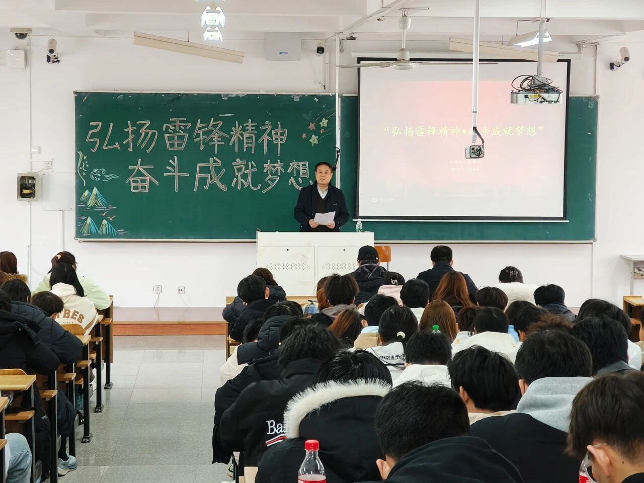 3月4日,辽科大化学工程学院于明德楼A313举办报告会。会议邀请到鞍山市军休中心关工委副主任王维江为同学们做“雷锋精神的时代价值”。鞍山市军休中心何长岭、化工学院团委负责人李世新及200余名学生参加报告会。