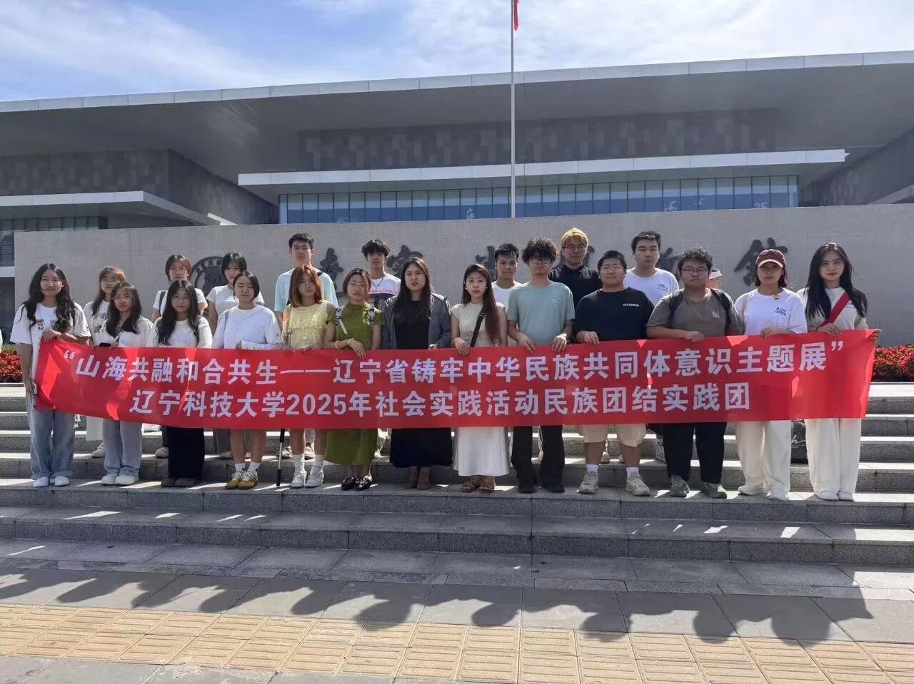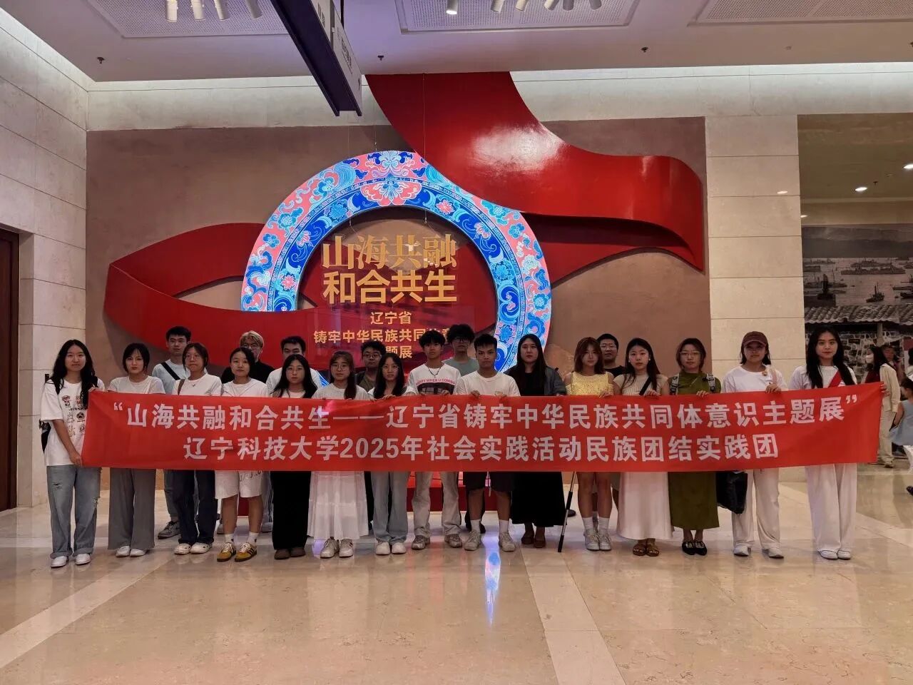8月8日,辽宁科技大学化学工程学院民族团结实践团走进辽宁省博物馆,沉浸式参观“山海共融和合共生——辽宁省铸牢中华民族共同体意识主题展”。实践团汇聚满族等多民族学生代表,以观展为基、研讨为翼,让中华民族共同体意识在青春实践中落地生根。
