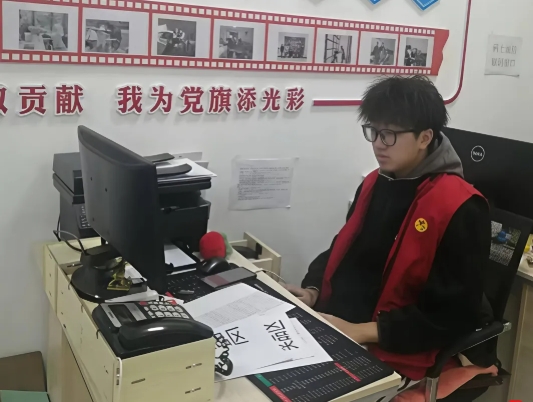 丛士博,男,共青团员,应用化学 24-1 班学生。2026 年寒假,他以返乡大学生志愿者身份投身创业城街道创业二社区服务,围绕材料整理、电子档案录入归档、换届工作协助、消防安全巡查与知识宣传等工作认真履职,在基层岗位中践行青年担当,锤炼品格、增长才干。