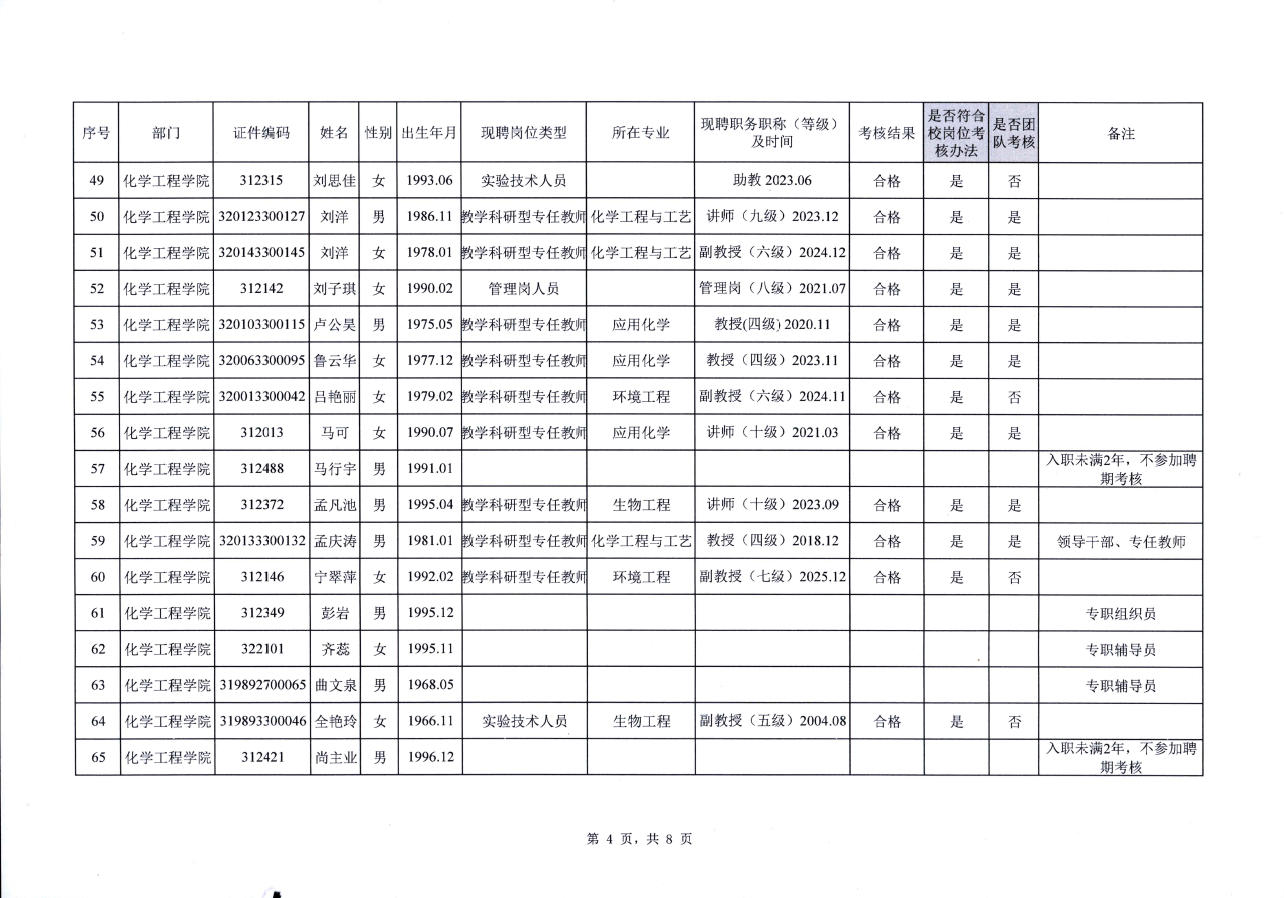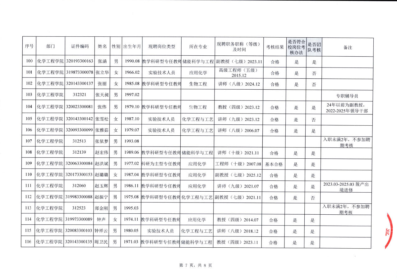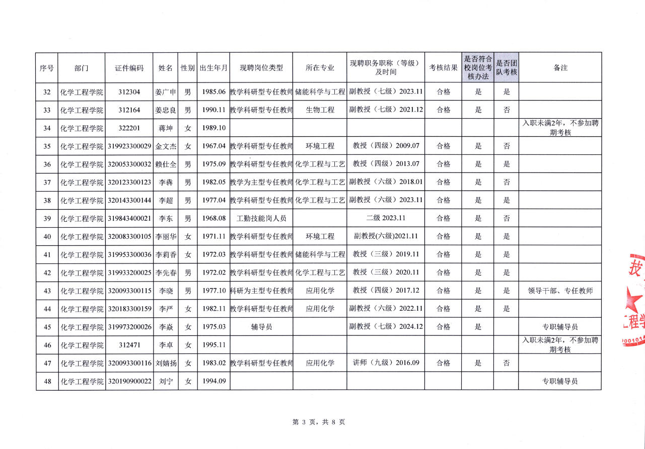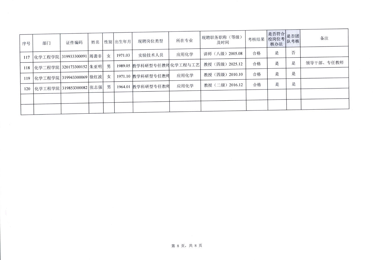 关于化学工程学院教职工2022-2025年聘期考核结果的公示