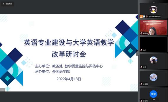 4月13日下午,由辽宁科技大学教务处、教学质量监控与评估中心主办,外国语学院承办的英语专业建设与大学英语教学改革研讨会在线上召开。校党委常委、副校长李胜利出席研讨会,教务处、教学质量监控与评估中心相关工作人员、外国语学院全体教职工参加会议。
