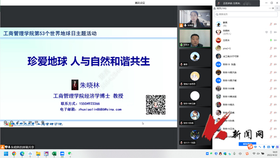 4月22日,在第53个世界地球日来临之际,辽宁科技大学工商管理学院党委开展“世界地球日”宣传教育主题党日活动。邀请学院朱晓林教授在线上为同学们做了一场题为《珍爱地球,人与自然和谐共生》的主题报告,学院全体学生党员、入党积极分子参加了活动。