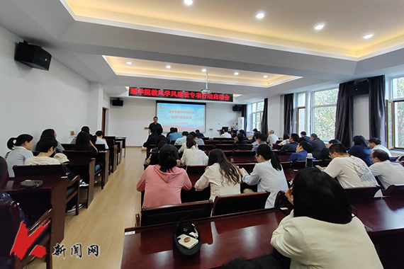 日前,理学院召开教风学风建设专项行动启动会,学院全体教职工参加会议。