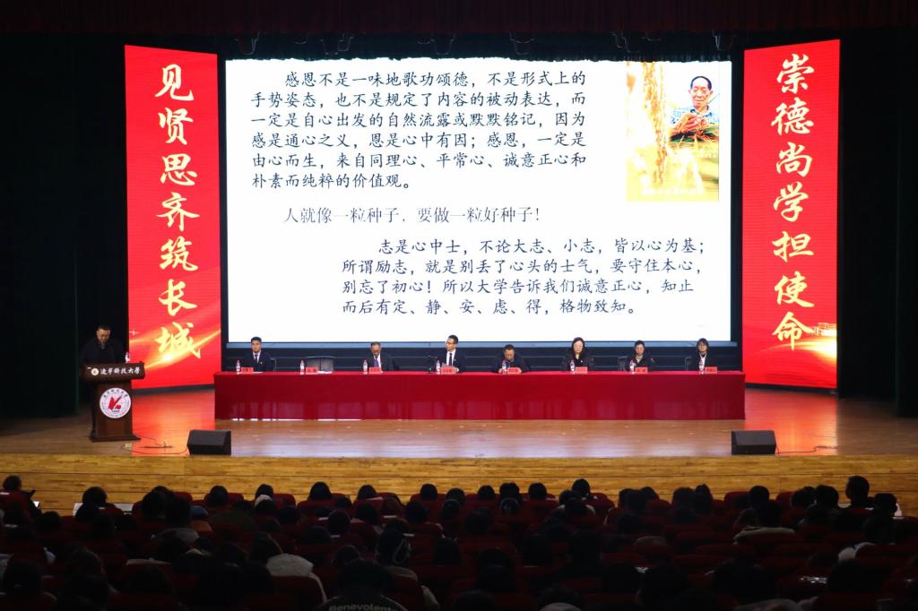 随后,学院副院长温馨宣读2025年度学生先进集体和先进个人表彰决定。在激昂的音乐中,获奖代表依次上台接受表彰,台下响起热烈掌声,向优秀学子们致以诚挚祝贺。颁奖仪式后,温院长还就国家及学校的资助政策进行了宣讲,并开展感恩励志主题教育,勉励同学们心怀感恩、自强不息、奋发成才。