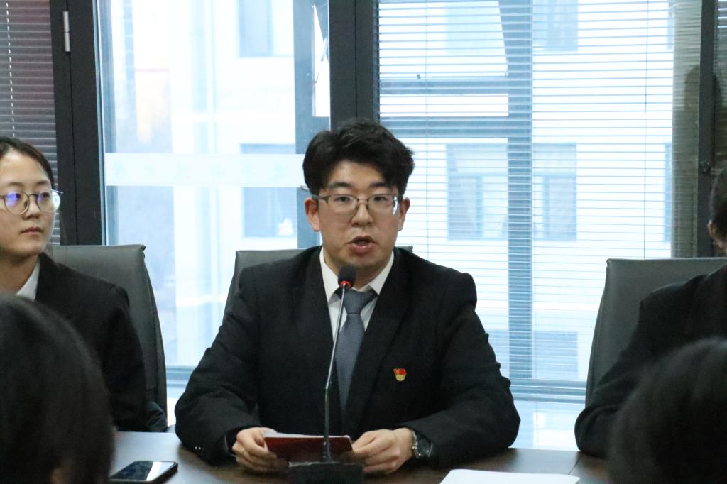 接着,经法学院学生第二党支部书记张鹏飞从支部建设路径、品牌打造成果等方面介绍了支部在思想引领、先锋示范等方面的特色做法。他以“传承红色精神 勇担时代使命”为主题为现场党员上主题党课,结合辽宁“红色六地”精神,通过邀请支部中六位来自红色六地的党员同志作家乡红色文化分享,深刻阐述红色精神的当代意义。他强调,青年党员要把红色基因融入血脉,把初心使命落实到日常学习和实际行动中,在服务师生、服务集体中锤炼担当品质。