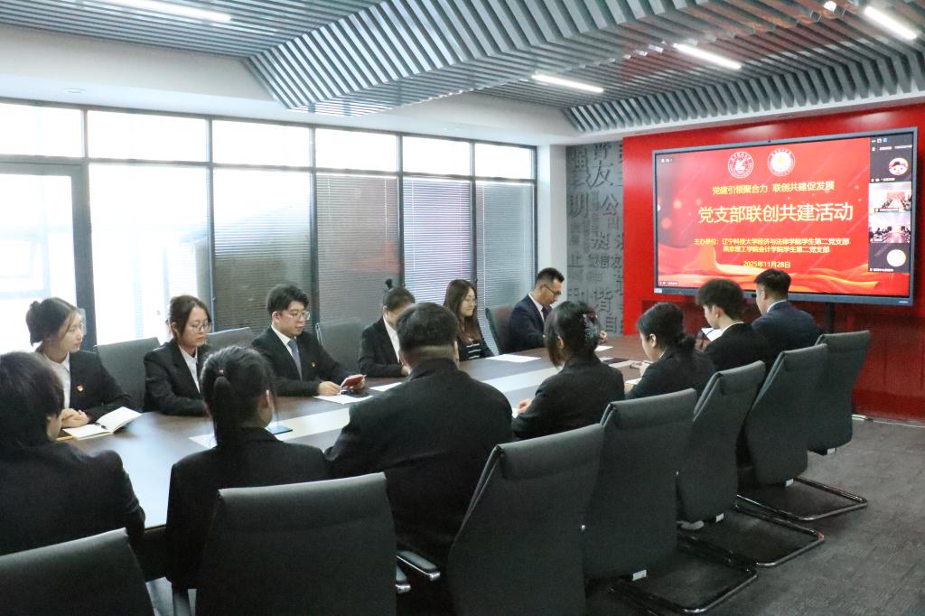 活动最后,辽宁科技大学经法学院党委书记赵智博作总结讲话。他指出,本次跨校支部联创共建活动是基层党建工作的一次创新实践。双方要进一步完善合作机制,强化资源共享和优势互补,持续提升党建育人的内生动力。他希望青年党员能在共建过程中不断增强党性修养,将个人理想融入国家发展大局,肩负起新时代青年的使命与担当。