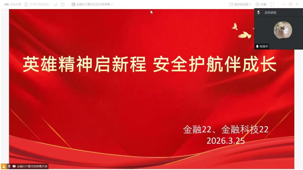 班会围绕“学习金城龙同志精神,讲好英雄故事”这一主线展开,辅导员引导学生从金城龙同志无畏救人的英勇事迹切入,深刻领会其舍己为人的崇高品格。通过对英雄事迹的系统讲解与价值阐释,进一步引导青年学生在榜样力量中汲取奋进动力,坚定理想信念,厚植家国情怀,激励大家以实际行动践行新时代青年的使命与责任担当。