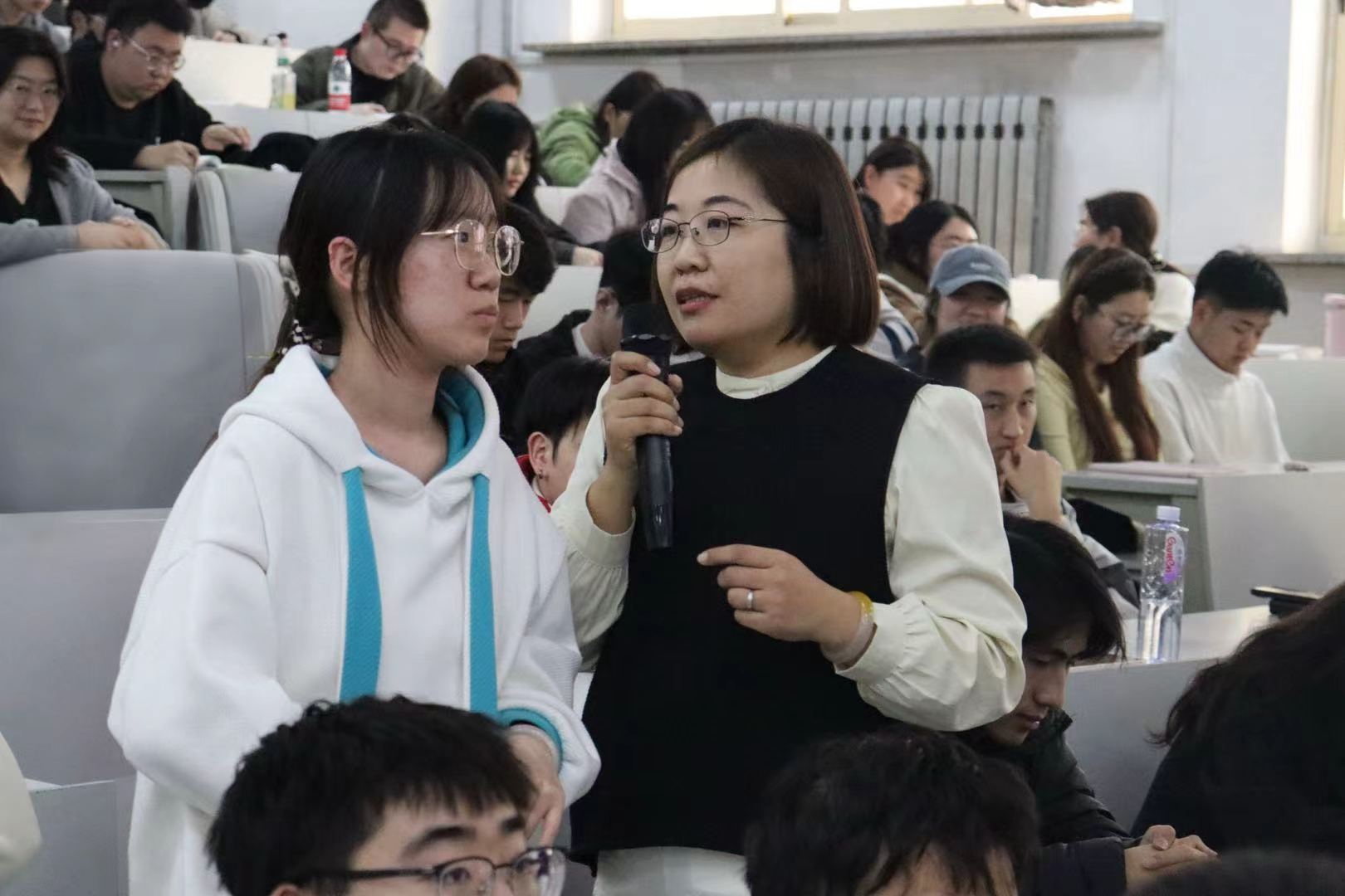 讲座伊始,王潇潇以分析就业形势为切入点,向在场学生提出问题,循序渐进地阐述了同学们可能面临的就业困境。随后,她运用责、权、利三者的辩证关系深入剖析职场本质,指出职场核心在于创造价值和与组织共同发展,并提醒同学们唯有如此方能在职业道路上稳步前行。互动环节中,她以面试官身份引导学生提出关于面试的疑问,助力同学们掌握应聘方法、沉着应对面试。讲座尾声,学院领导针对实际工作中遇到的学生面试存在的问题进行提问,得到了详尽耐心的解答,体现了学院领导对学生就业工作的高度重视与深切关怀。