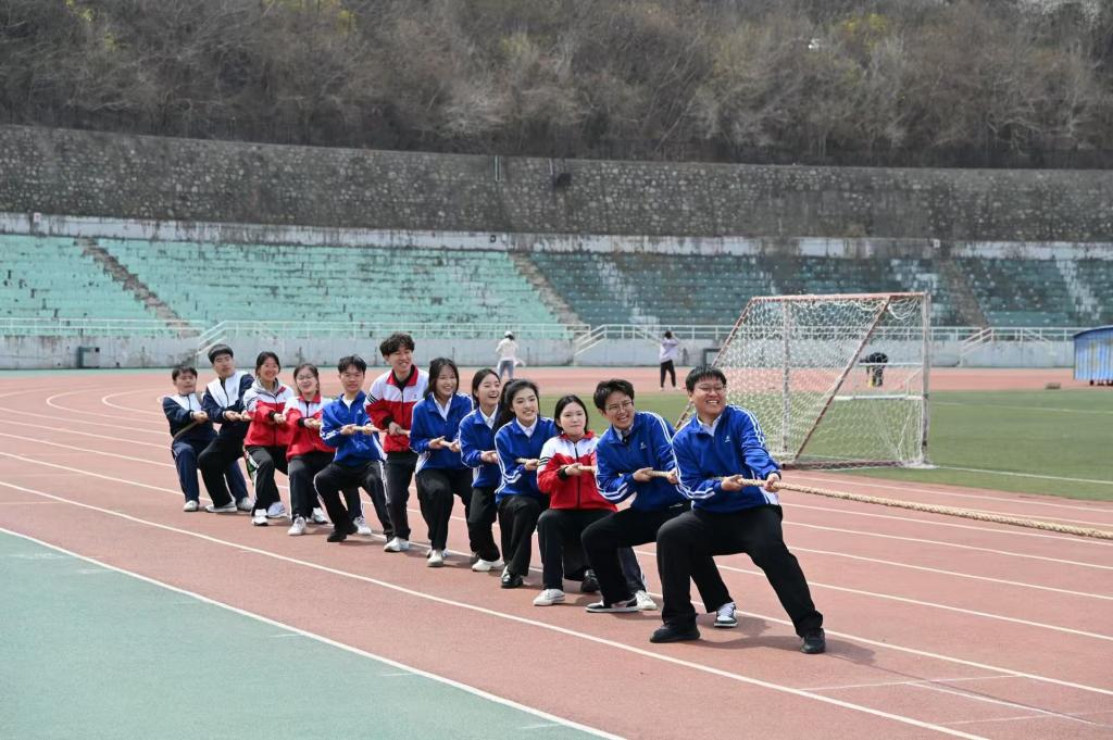 4月12日上午,经法学院“阳光寝室”趣味运动会在主体育场火热开展。学院党委书记赵智博、党委副书记张国华、学办主任李路云、团委书记张鹏飞亲临现场观摩指导,2025级全体学生踊跃参与,在欢声笑语中挥洒青春活力、凝聚寝室情谊。