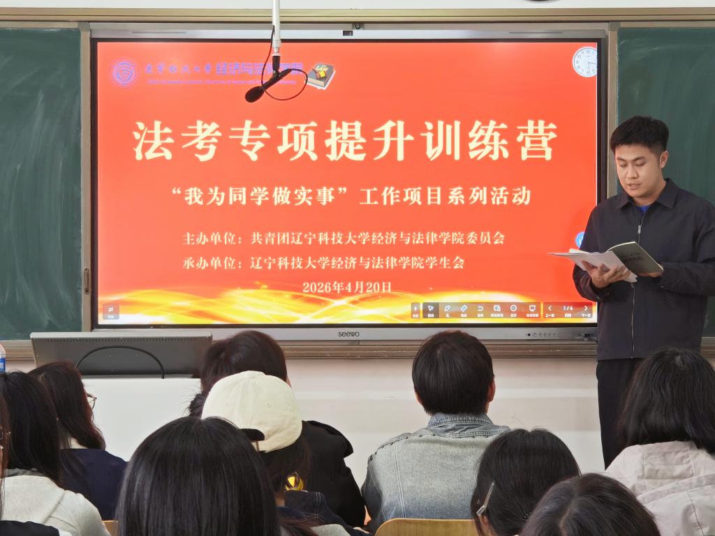 4月20日,经法学院于博学楼B506举办法考专项提升训练营开营仪式。学院团委书记张鹏飞、研究生代表赵辛凯、学生会学术科技部以及法学24级全体同学参加本次活动。