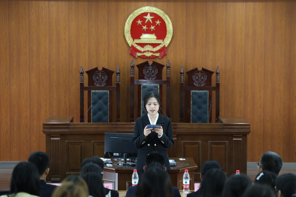 活动伊始,经法学院学生分组扮演审判长、审判员、原被告代理人等角色,严格遵循法定诉讼程序,完整还原了法庭调查、举证质证、法庭辩论、当庭宣判等庭审全流程。庭审中,各方“诉讼参与人”围绕涉案知识产权侵权认定、证据采信、法律适用等核心问题展开严谨辩论,逻辑清晰、表达专业,充分展现了扎实的法律专业素养和良好的庭审应变能力。