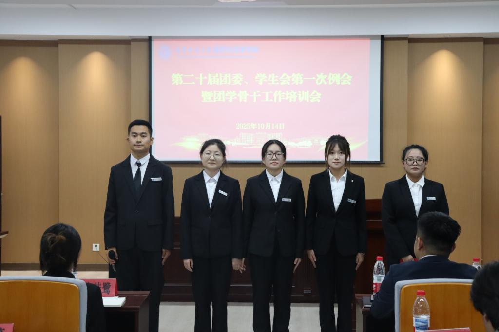 会议伊始,学生会主席团成员张珈奕宣读《经法学院学生会工作章程》,详细介绍了团委、学生会的工作职能与考核标准,并对各团学骨干的日常工作作出了规范与指导。随后,各部门负责人依次上台发言,介绍部门职责及未来工作规划。部门成员也进行了自我介绍,纷纷表示将以饱满的热情和高度的责任感投入工作,在今后的学习与实践中携手并进,共同为经法学院的发展贡献力量。