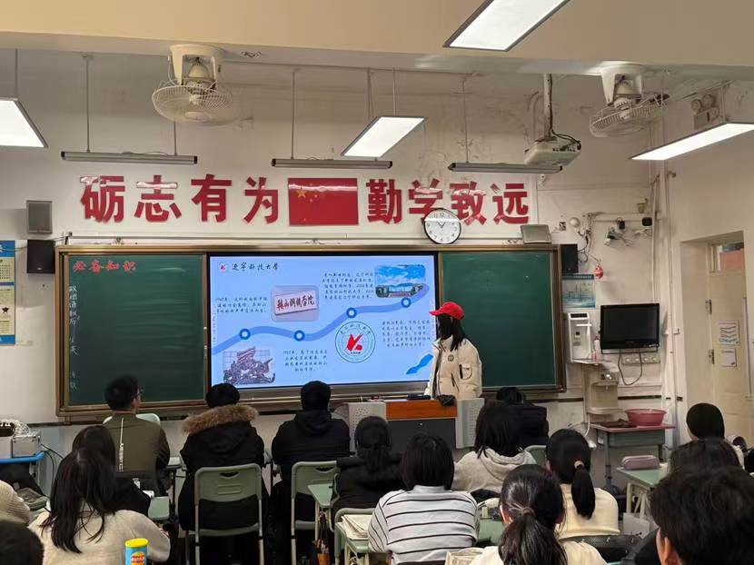 团队以PPT、视频为载体,聚焦学校办学特色、王牌专业实力、学科优势及育人成果,通过社团活动照片、校园风景实拍等方式,直观展现科大深厚底蕴与人文特色。宣讲后设置互动答疑环节,队员耐心解答学弟学妹的疑问,鼓励大家坚定目标、追逐梦想;同时赠送定制校园明信片,以暖心互动传递科大关怀,进一步加深同学们对学校的了解与喜爱。