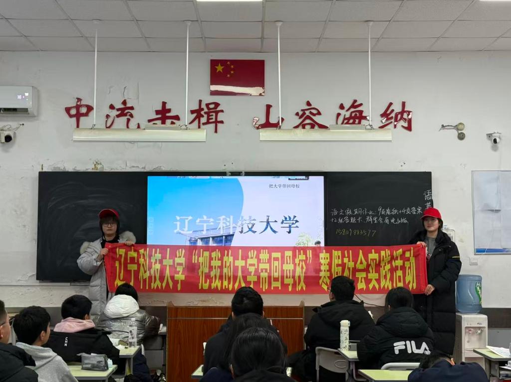 寒假期间,“逐梦青春队”成员赵锐、郑全恩、高赫薇、蒙好、钱恺睿前往五所高中母校,开展“把我的大学带回母校”寒假社会实践活动。