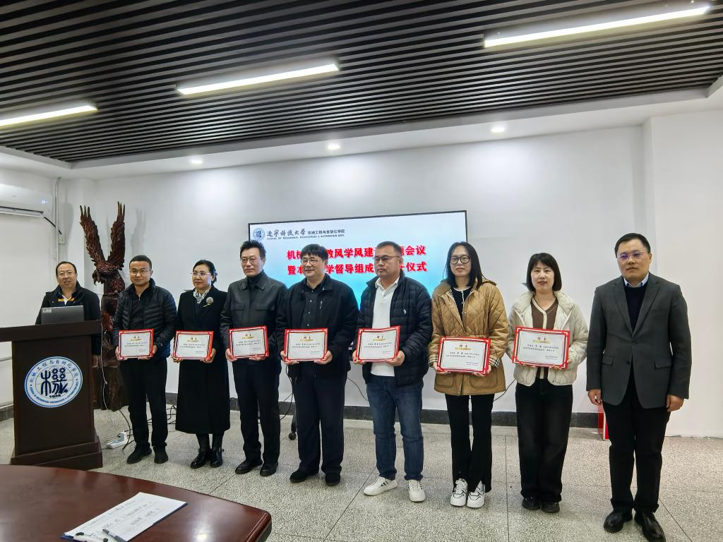 为规范教学管理、强化质量监控,充分发挥教学督导关键作用,10 月 29 日,机械学院隆重召开督导聘任大会暨第一次工作例会。会议围绕督导部署、细则解读与教学研讨展开。院长解志文、教学院长韩冰为全体督导教师颁发了聘书。