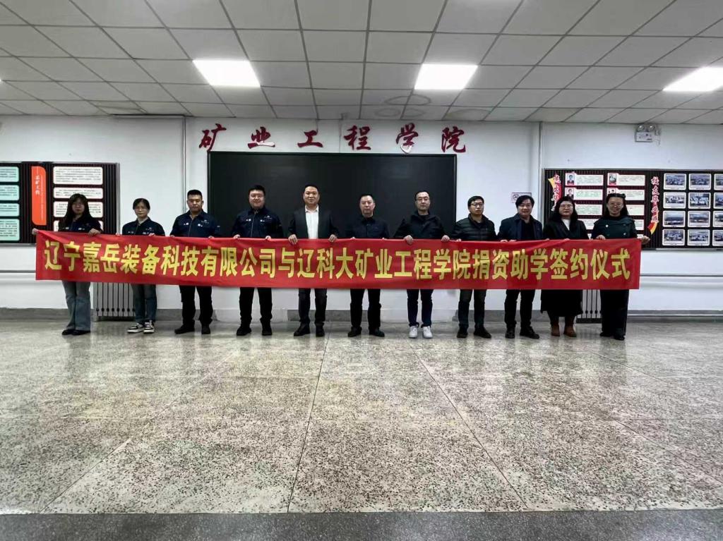 2025年11月7日,辽宁嘉岳装备科技有限公司向辽宁科技大学教育基金会捐赠仪式在矿业学院430会议室举行。辽宁嘉岳装备科技有限公司总经理顾秀岩带队,携矿物加工专业2010届优秀校友付玉等一行出席;矿业学院领导班子及相关负责同志出席仪式。