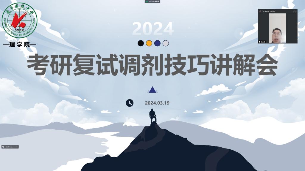 3月19日,辽宁科技大学理学院召开考研调剂技巧讲解会,帮助有调剂意向的考生从容应对复试与调剂过程中可能出现的一些问题,助力学生成功上岸。理学院党委书记张春霞、副院长王健、副书记侯立臣、学办辅导员及2020级考研学生参会。