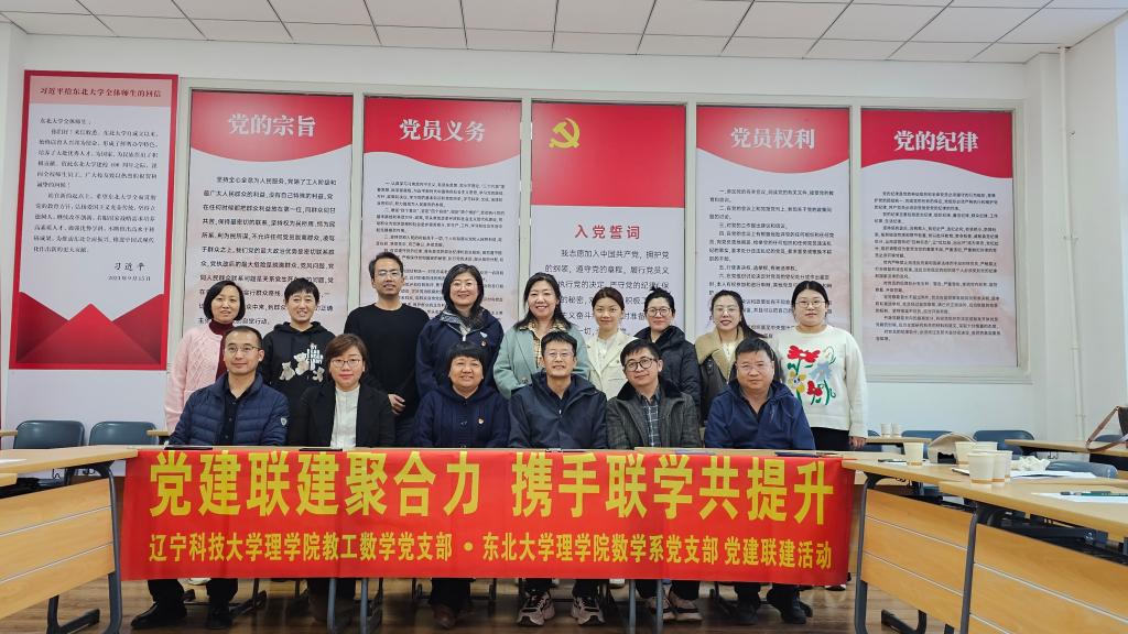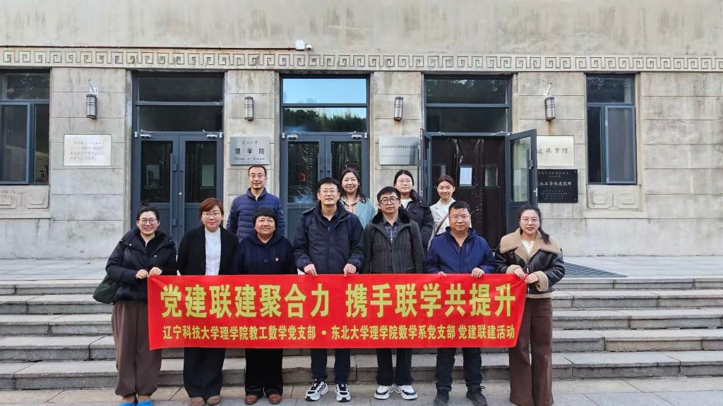 11月11日,辽科大理学院教工数学党支部与东北大学理学院数学系党支部联合开展“党建联建聚合力 携手联学共提升”主题活动。辽科大教工数学党支部书记武力兵教授带领骨干党员参加活动。