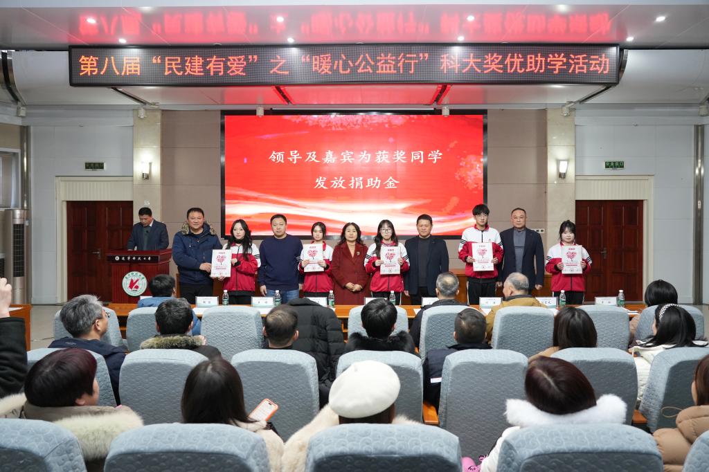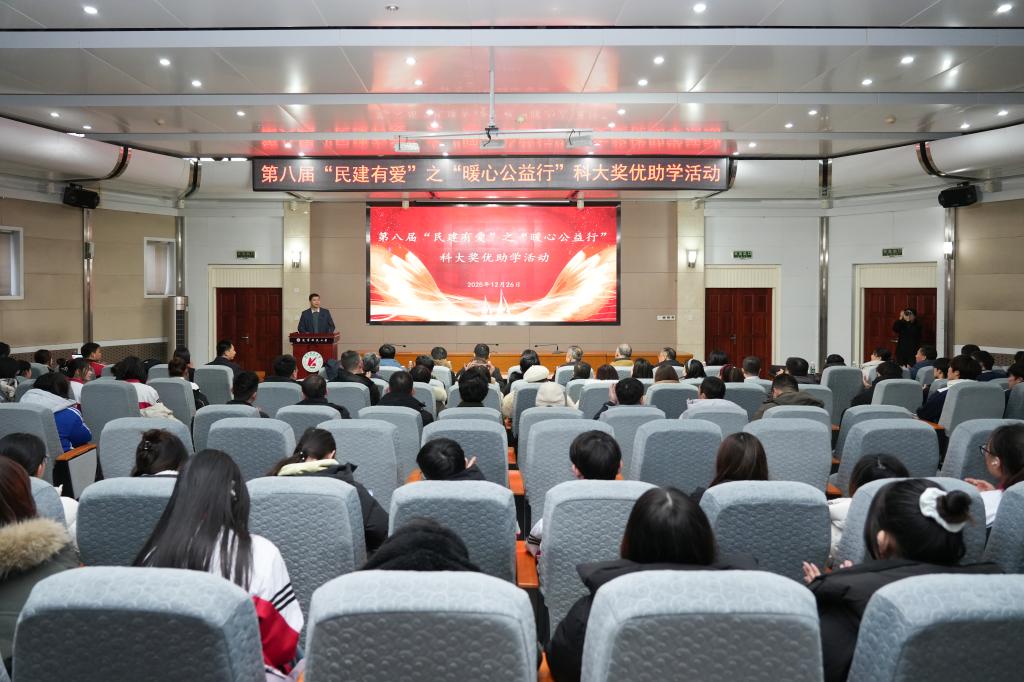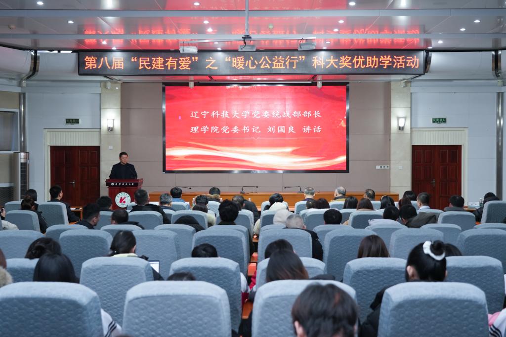 12月26日,由民建鞍山市委员会与辽宁科技大学统战部、理学院、艺术学院共同主办的第八届“民建有爱”之“暖心公益行”科大奖优助学活动在学校图书馆报告厅举行。鞍山市政协副主席、民建鞍山市委会主委崔玉玲出席活动。民建鞍山市委会副主委及各支部成员,辽科大统战部负责人、理学院班子成员及理学院、艺术学院师生代表参加。