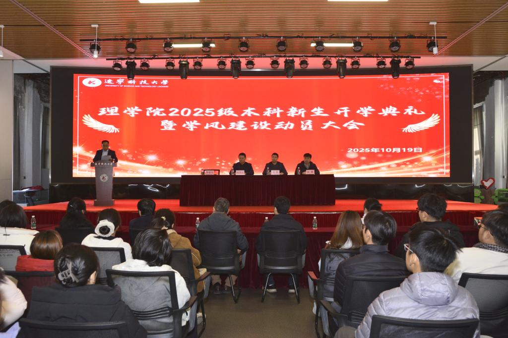 10月19日下午,辽宁科技大学理学院2025级本科新生开学典礼暨学风建设动员大会在艺术馆隆重举行。学院领导班子、各系主任、教师代表、学生骨干代表及2025级全体本科新生共同参加了本次活动。理学院党委副书记李春生主持本次活动。