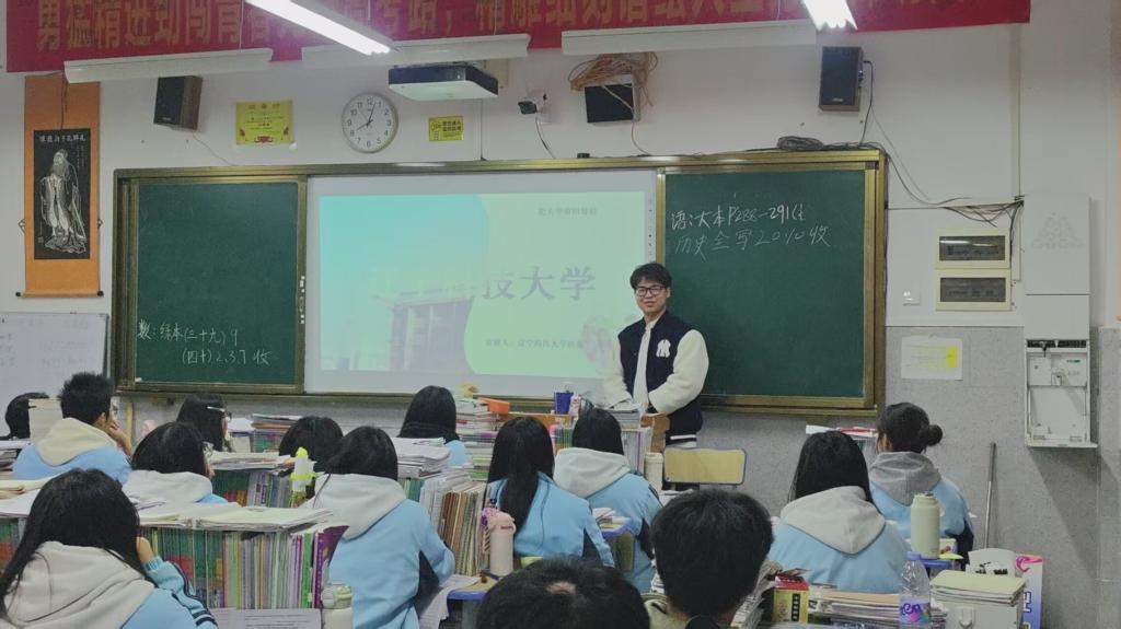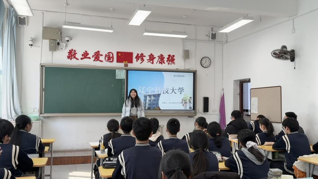 1月16日至1月18日,由商诗雪、王舒裕、程鑫、梁艺、刘小雨四位同学组成的“薪火传声队”,实践团队成员分别在海城同泽中学、鞍山市第三中学、崇左市广西大学附属中学以“我在辽宁科技大学等你”为主题开展宣讲,成员结合自身经历,从专业特色、校园生活、升学规划等方面展开分享。宣讲过程中,队员们以“学长学姐”的身份,既分享了辽宁科技大学从鞍山钢铁学院到多科性大学的发展历程,也生动讲述了大学课堂、社团活动、竞赛实践等多元生活场景。为搭建大中学教育衔接桥梁,厚植学子家国情怀与感恩之心,展现辽宁科技大学办学实力与学子风采,我校特启动“把我的大学带回母校”社会实践征集活动,以青春之名,赴故乡之约,向母校学弟学妹讲述科大故事、传递奋斗力量。传递“博学明德、经世致用”的科大精神,鼓励学弟学妹树立远大理想,将个人梦想融入国家发展,激发他们报考科大、建设家乡的美好愿景。