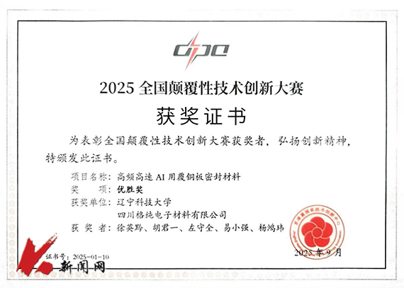 近日,2025年全国颠覆性技术创新大赛落幕。辽宁科技大学“高频高速AI用覆铜板密封材料”项目荣获大赛优胜奖,彰显了学校在高端化工新材料领域的创新实力。