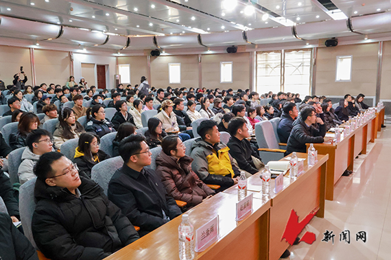 12月25日,辽宁科技大学团委联合鞍山团市委在图书馆报告厅举办奋进“十五五”青春挺膺担当——学习贯彻党的二十届四中全会精神示范宣讲会,邀请全国青联委员、团中央青年讲师团成员胡奉雅作题为“青春为中国式现代化挺膺担当”专题讲座。团市委领导、校院团干部和学生代表共200余人参会。