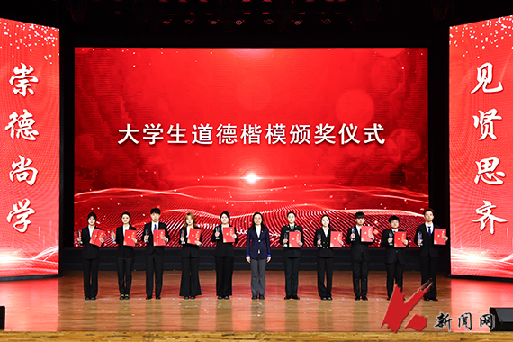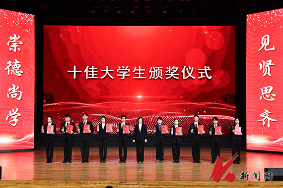 纪振廷在主持中表示,荣誉属于过去,奋斗成就未来。希望受表彰的同学将荣誉作为新的起点,在未来的人生道路上继续追求卓越,勇为先锋。希望全校同学对标榜样,见贤思齐,坚定理想信念,锤炼过硬本领,陶冶高尚品格,将个人发展的“小目标”融入国家民族的“大蓝图”,让青春在为国家、为人民的奉献中焕发出更加夺目的光彩,以优异的成绩迎接学校第四次党代会胜利召开。 (供稿单位:学生处 图片来源:宣传部 金会刚)