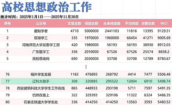 相关负责人表示,学校将继续深耕网络思政教育,以“辽科大助手”微信公众号为载体,聚焦学生成长需求、提高网络作品质量、拓展服务覆盖范围,以更具温度、更接地气、更富感染力的新媒体传播方式,推动学校网络思政教育工作高质量发展。(供稿单位:学生处 图片来源:学生处)