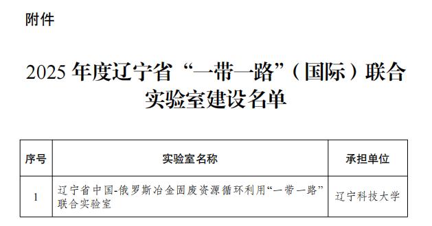 辽科大获批组建辽宁省中国-俄罗斯冶金固废资源循环利用“一带一路”联合实验室